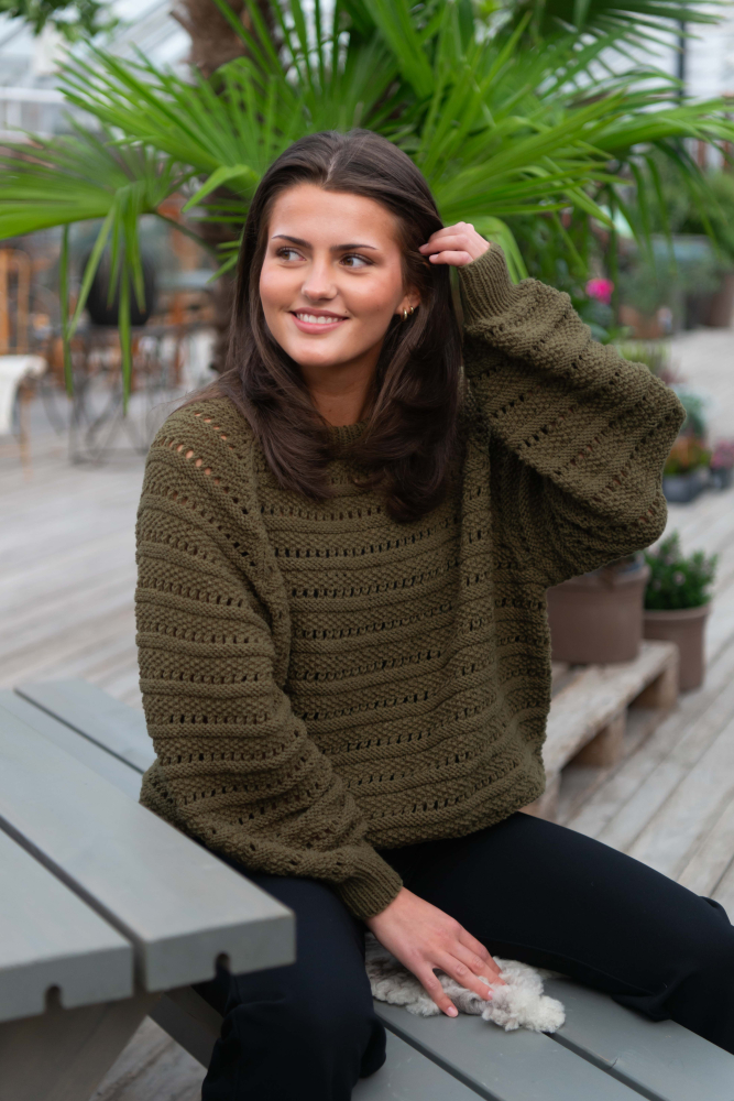 Alle våre strikkepakker inneholder oppskrift og komplett garnforbruk til ønsket størrelse gitt at oppgitte mål og strikkefasthet overholdes. OBS! Strikkepinner, knapper og annet tilbehør må kjøpes separat.