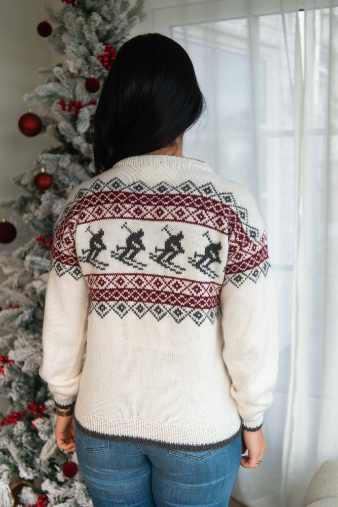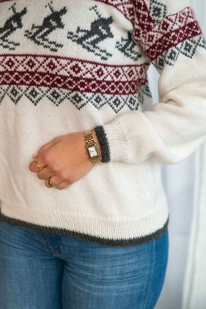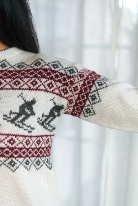 Du kan selv endre farge i strikkepakken ; velg da først størrelsen du ønsker å strikke, så kommer det opp fargevalg nedenfor. NB! Oppskrift vil alltid leveres i strikkepakkens originale farger: Offwhite, Bordeaux og Koksgrå