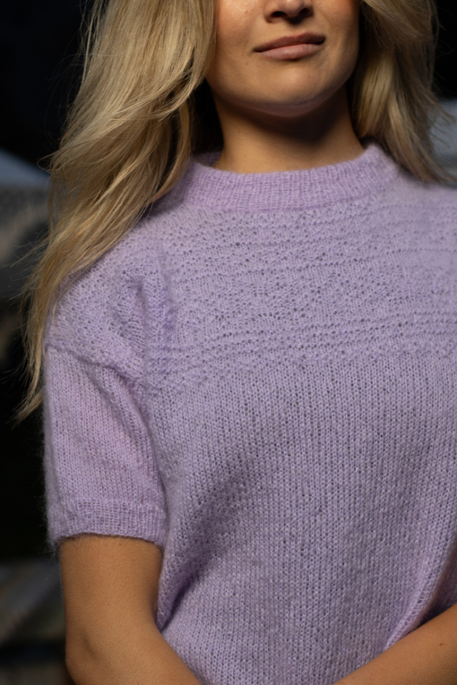 Du kan selv endre farge i strikkepakken ; velg da først størrelsen du ønsker å strikke, så kommer det opp fargevalg nedenfor. NB! Oppskrift vil alltid leveres i strikkepakkens originale farger; Lys Lavendel