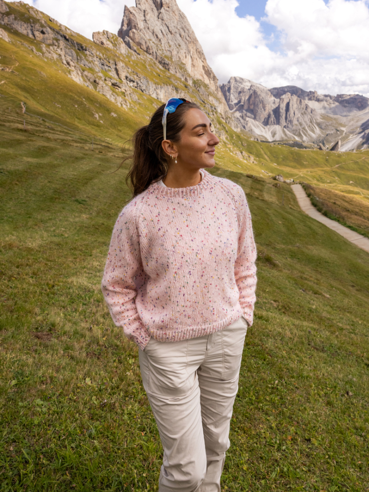 Du kan selv endre farge i strikkepakken ; velg da først størrelsen du ønsker å strikke, så kommer det opp fargevalg nedenfor. NB! Oppskrift vil alltid leveres i strikkepakkens originale farge: Lys Rosa