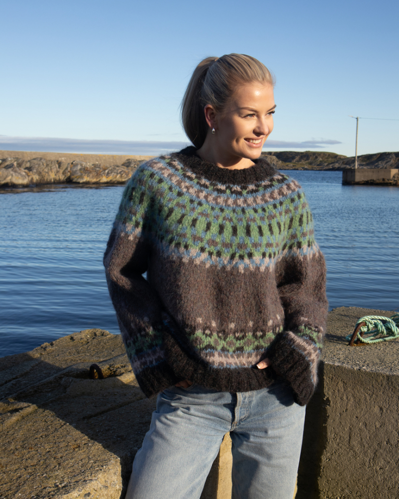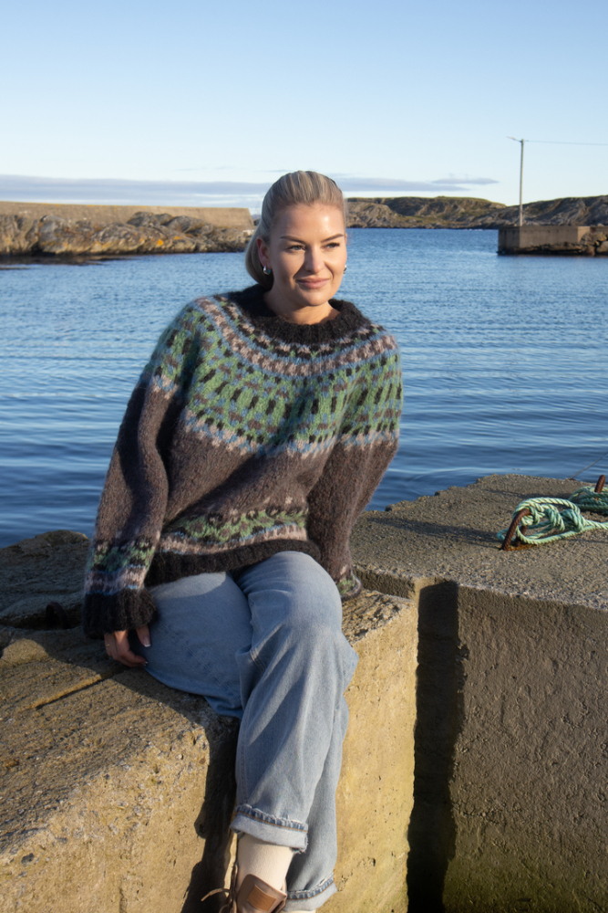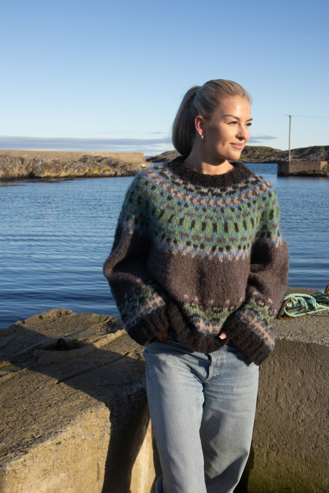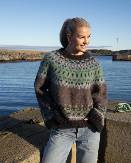 Du kan selv endre farge i strikkepakken ; velg da først størrelsen du ønsker å strikke, så kommer det opp fargevalg nedenfor. NB! Oppskrift vil alltid leveres i strikkepakkens originale farger