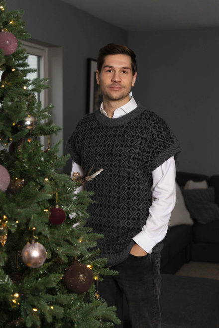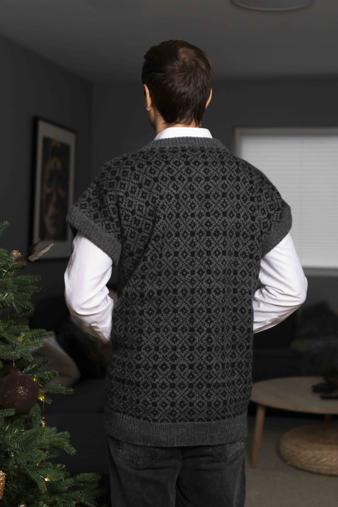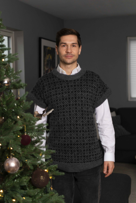 Du kan selv endre farge i strikkepakken ; velg da først størrelsen du ønsker å strikke, så kommer det opp fargevalg nedenfor. NB! Oppskrift vil alltid leveres i strikkepakkens originale farge: Koksgrå og Svart
