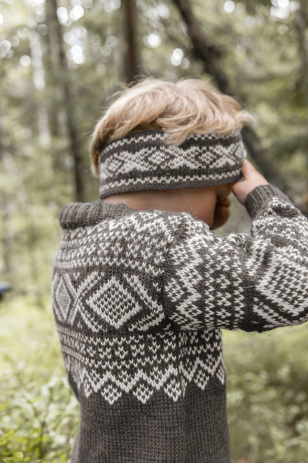 Du kan selv endre farge i strikkepakken ; velg da først størrelsen du ønsker å strikke, så kommer det opp fargevalg nedenfor. NB! Oppskrift vil alltid leveres i strikkepakkens originale farge: Muldvarp og Hvit