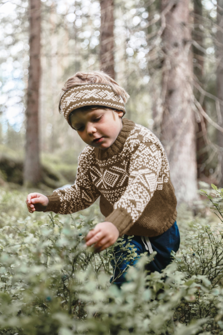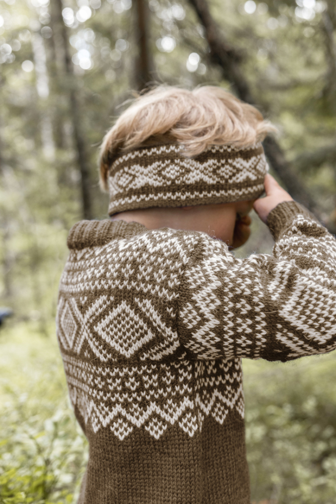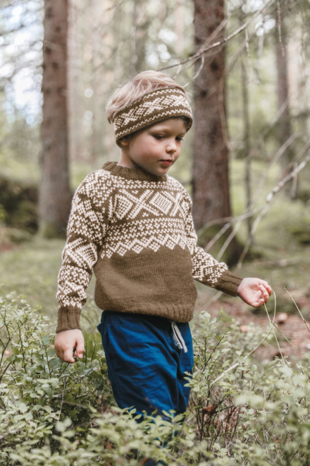 Du kan selv endre farge i strikkepakken ; velg da først størrelsen du ønsker å strikke, så kommer det opp fargevalg nedenfor. NB! Oppskrift vil alltid leveres i strikkepakkens originale farge: Nøttebrun og Hvit