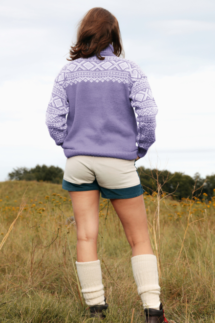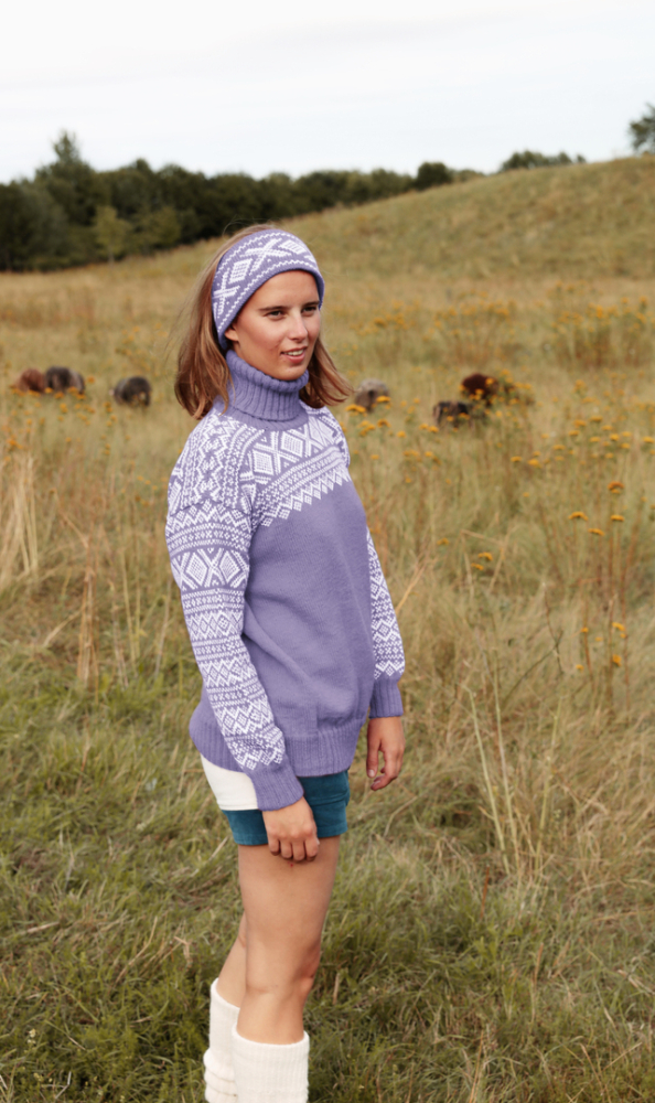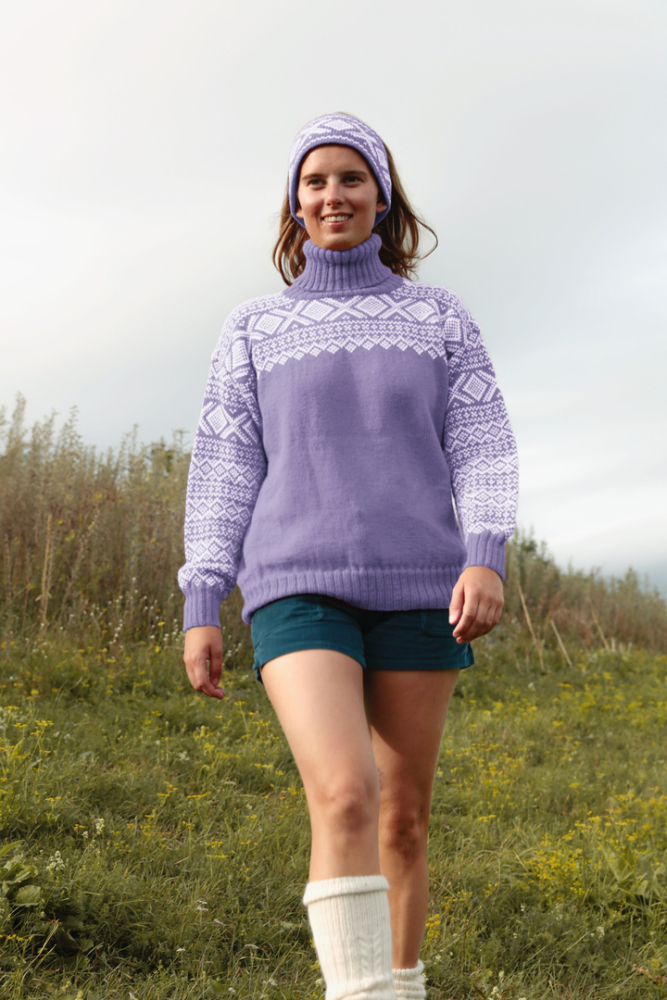 Du kan selv endre farge i strikkepakken ; velg da først størrelsen du ønsker å strikke, så kommer det opp fargevalg nedenfor. NB! Oppskrift vil alltid leveres i strikkepakkens originale farge: Lilac og Hvit