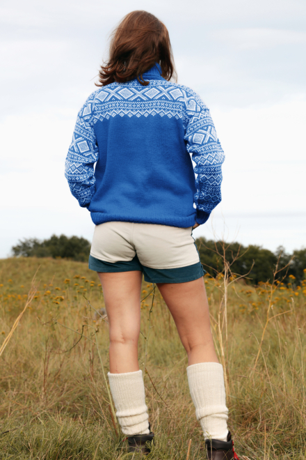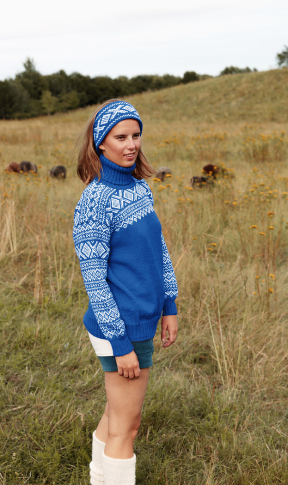 Du kan selv endre farge i strikkepakken ; velg da først størrelsen du ønsker å strikke, så kommer det opp fargevalg nedenfor. NB! Oppskrift vil alltid leveres i strikkepakkens originale farge: Kongeblå og Hvit