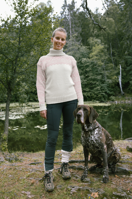 Du kan selv endre farge i strikkepakken ; velg da først størrelsen du ønsker å strikke, så kommer det opp fargevalg nedenfor. NB! Oppskrift vil alltid leveres i strikkepakkens originale farge: Kitt og Pudderrosa