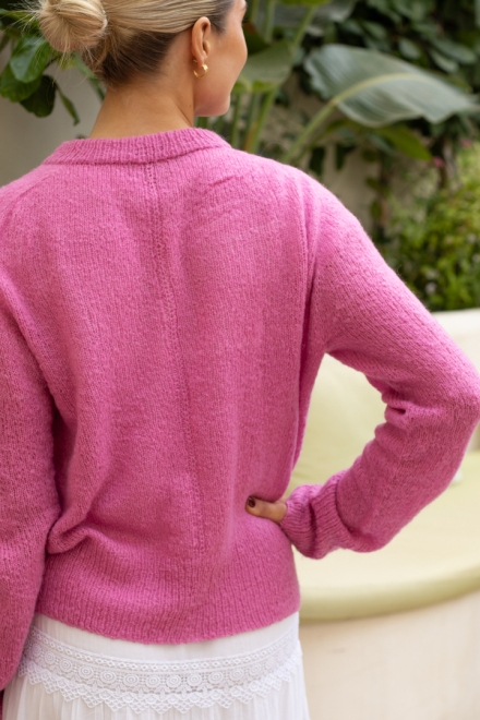 Du kan selv endre farge i strikkepakken ; velg da først størrelsen du ønsker å strikke, så kommer det opp fargevalg nedenfor. NB! Oppskrift vil alltid leveres i strikkepakkens originale farger; Fuksia