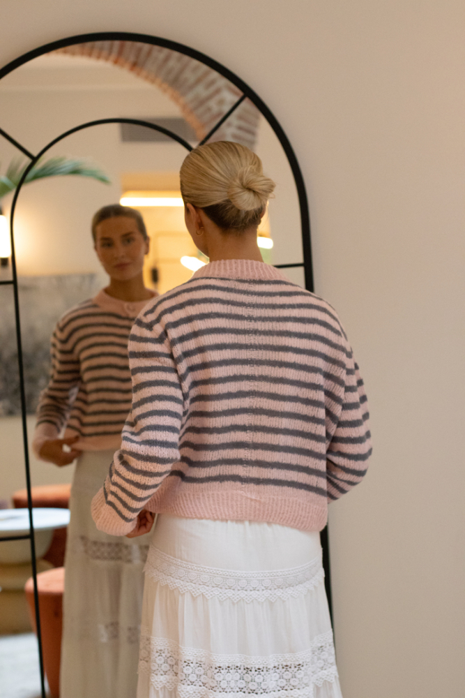 Du kan selv endre farge i strikkepakken ; velg da først størrelsen du ønsker å strikke, så kommer det opp fargevalg nedenfor. NB! Oppskrift vil alltid leveres i strikkepakkens originale farger; Lys Rosa og Mørk Grå