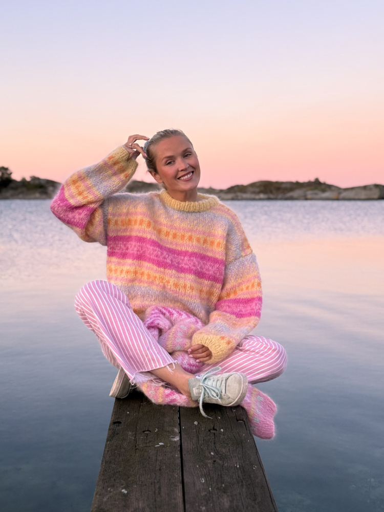 Alle våre strikkepakker inneholder oppskrift og komplett garnforbruk til ønsket størrelse gitt at oppgitte mål og strikkefasthet overholdes. .