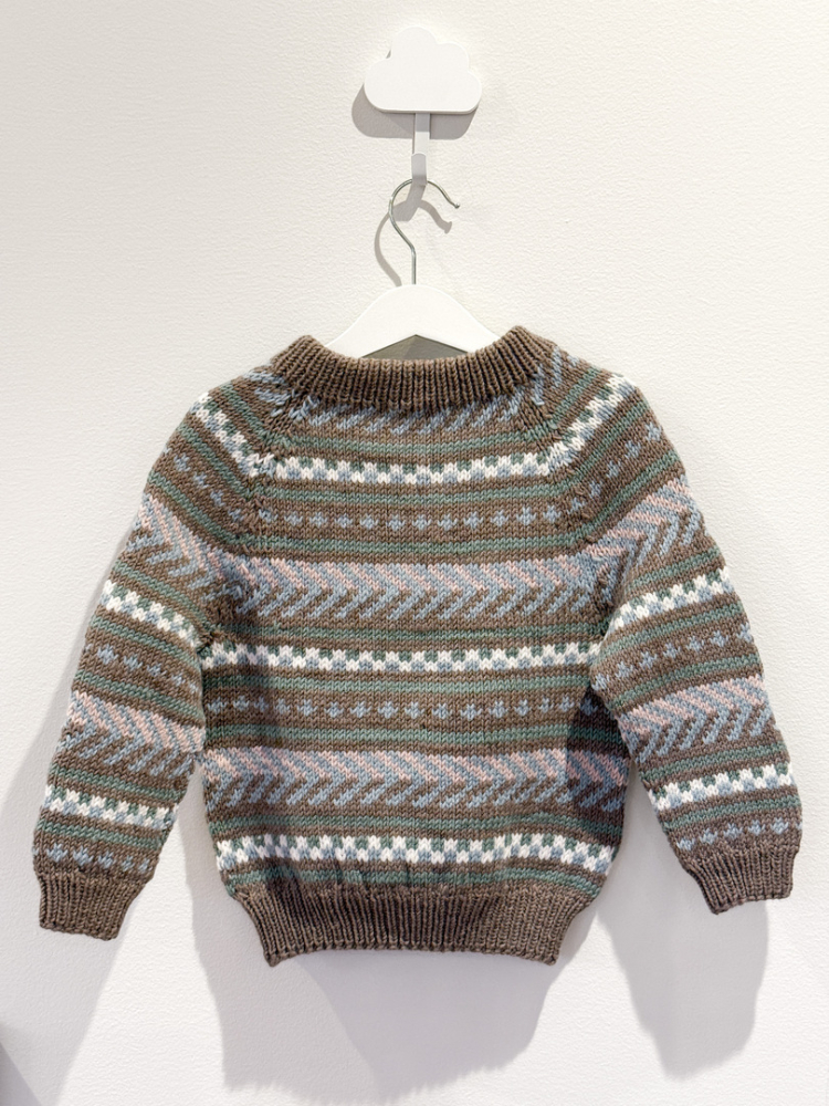 Du kan selv endre farge i strikkepakken ; velg da først størrelsen du ønsker å strikke, så kommer det opp fargevalg nedenfor. NB! Oppskrift vil alltid leveres i strikkepakkens originale farger: Lys Brun Melert, Jadegrønn, Dueblå, Hvit og Pudderrosa