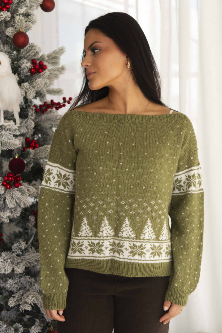 Du kan selv endre farge i strikkepakken ; velg da først størrelsen du ønsker å strikke, så kommer det opp fargevalg nedenfor. NB! Oppskrift vil alltid leveres i strikkepakkens originale farge: Grønn og Offwhite