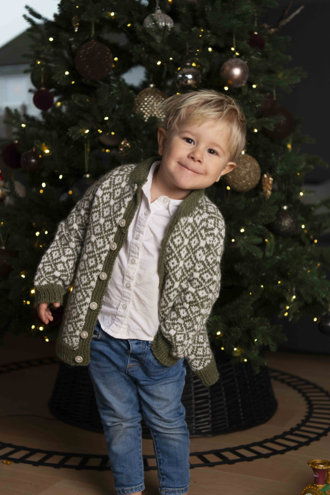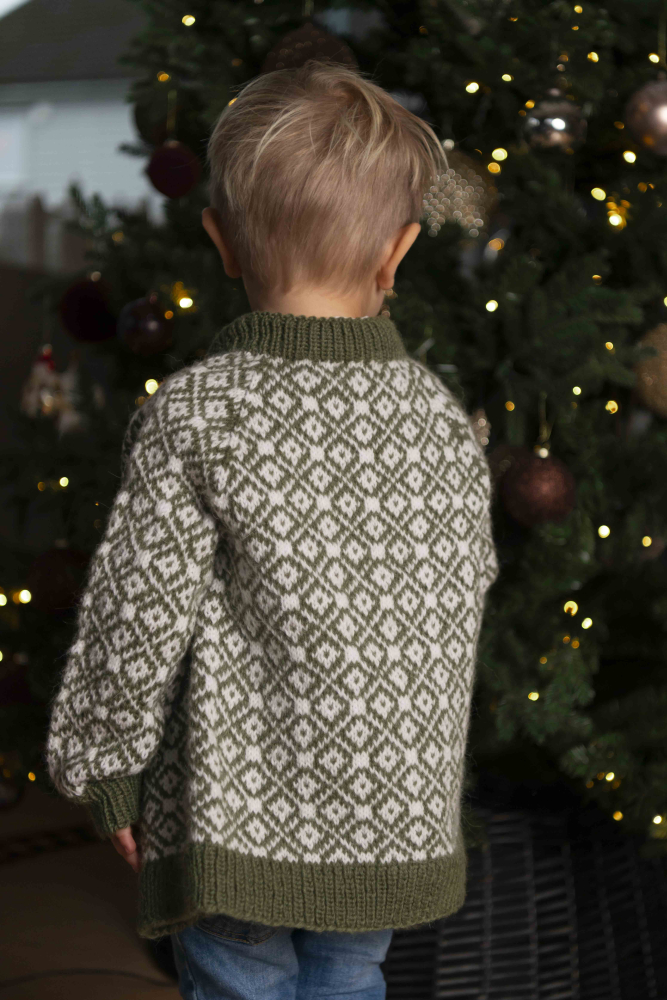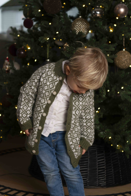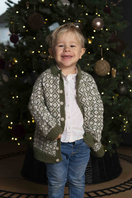 Du kan selv endre farge i strikkepakken ; velg da først størrelsen du ønsker å strikke, så kommer det opp fargevalg nedenfor. NB! Oppskrift vil alltid leveres i strikkepakkens originale farge:Grønn og Offwhite