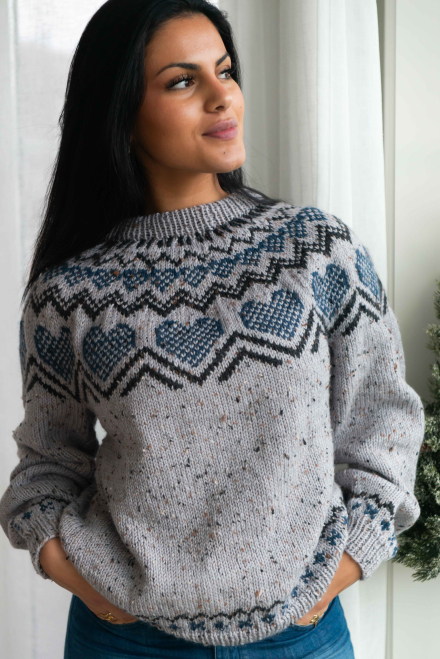 Du kan selv endre farge i strikkepakken ; velg da først størrelsen du ønsker å strikke, så kommer det opp fargevalg nedenfor. NB! Oppskrift vil alltid leveres i strikkepakkens originale farger: Lys Grå, Indigo og Koksgrå