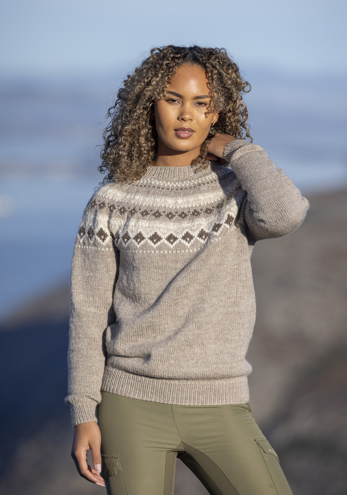 Du kan selv endre farge i strikkepakken ; velg da først størrelsen du ønsker å strikke, så kommer det opp fargevalg nedenfor. NB! Oppskrift vil alltid leveres i strikkepakkens originale farger: Beige, Naturhvit, Brun og Perlegrå