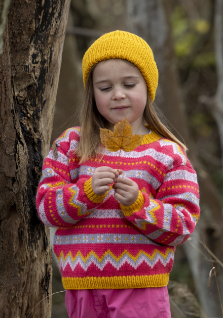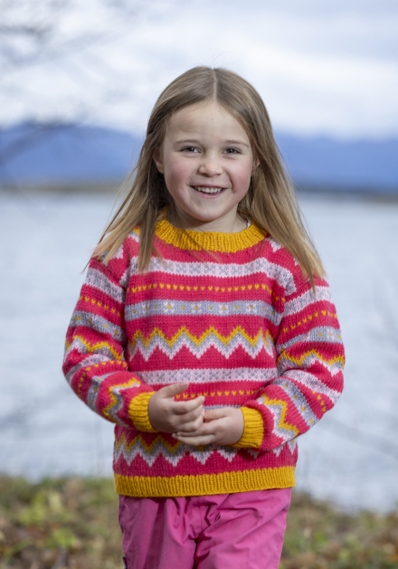 Du kan selv endre farge i strikkepakken ; velg da først størrelsen du ønsker å strikke, så kommer det opp fargevalg nedenfor. NB! Oppskrift vil alltid leveres i strikkepakkens originale farger: Rosa, Støvet Lilla, Gul og Lys Rosa
