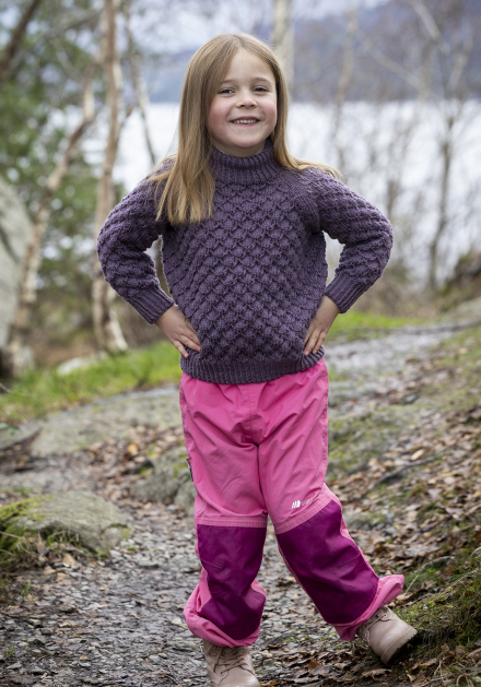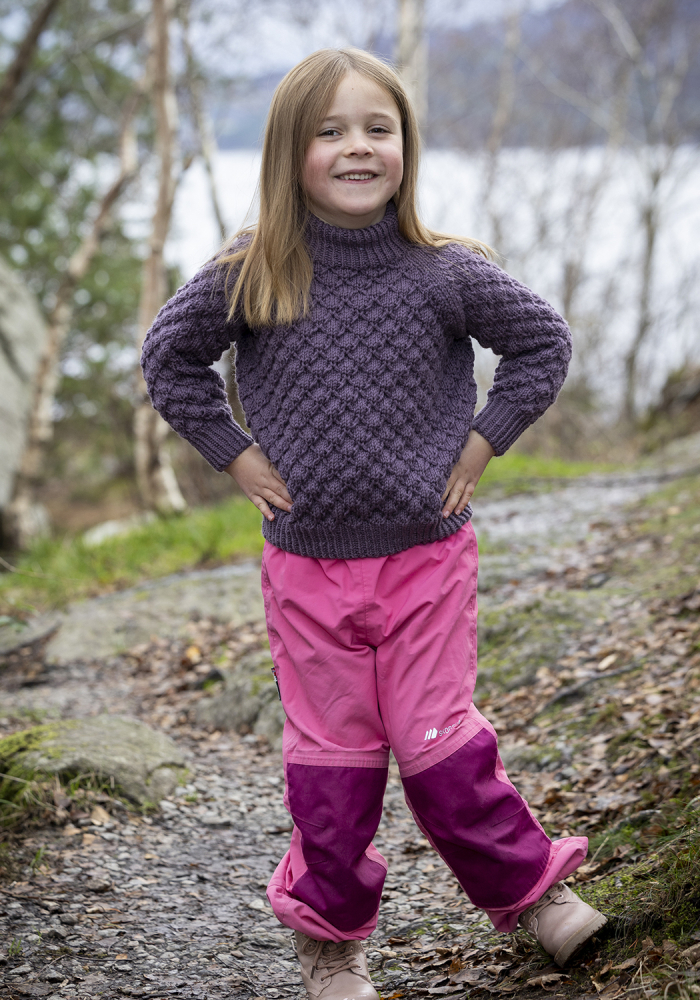 Du kan selv endre farge i strikkepakken ; velg da først størrelsen du ønsker å strikke, så kommer det opp fargevalg nedenfor. NB! Oppskrift vil alltid leveres i strikkepakkens originale farger: Lilla